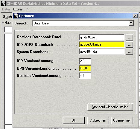 Unter "ICD-/OPS-Datenbank" ändern Sie die Einstellung zu: "gcode301.mda" (ohne Pfadangaben !)